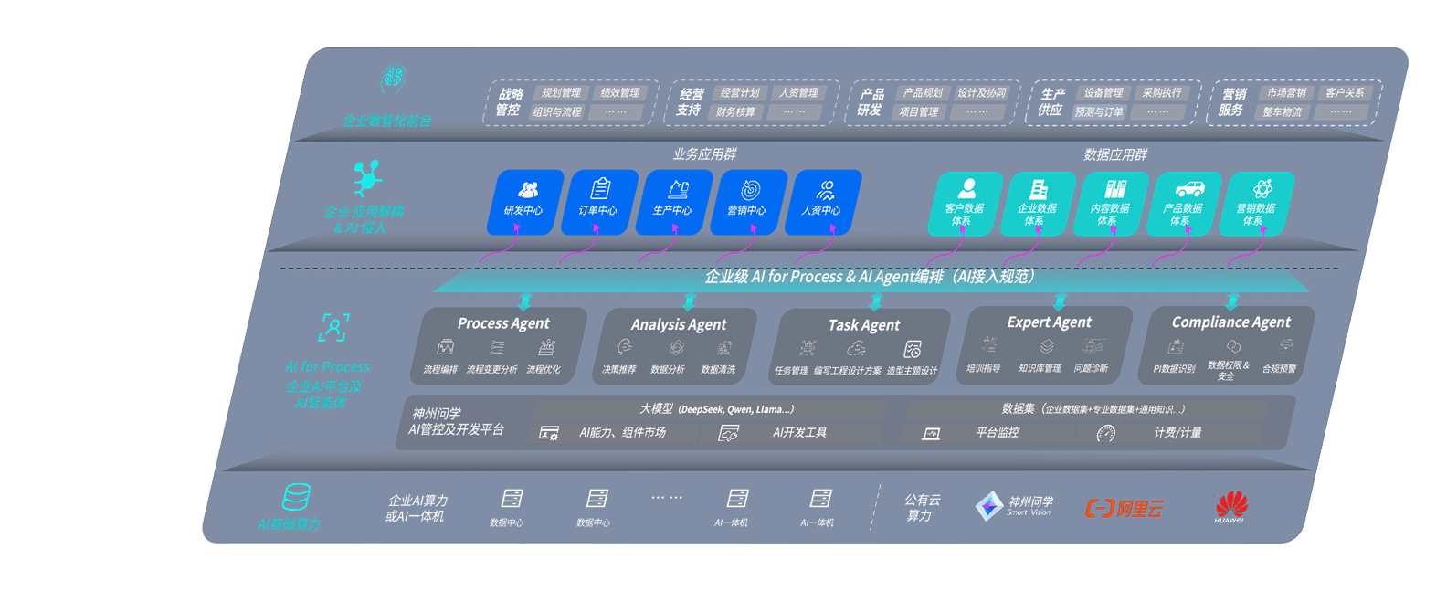 鼎点平台问学智车解决方案是一套基于AI技术的汽车行业智能化系统,,,覆盖从底层算力到顶层AI应用的全栈方案。。。方案由算力层、、、、模型层和应用层组成:算力层,,,方案支持多种一体机配置,,具备云端灵活部署、、多云适配以及动态优化计算资源的能力;模型层,,,,鼎点平台问学平台版提供了企业级AI应用一站式构建与管理平台,,,支持基于后训练强化技术的汽车企业专属模型的训练、、评测和运营;应用层,,,,鼎点平台问学DeepSeek版提供包括超级员工、、智能招采、、、、智能营销、、智能客服、、AI for BI等一系列解决方案,,,,可助力汽车行业实现数字化转型,,,让管理更智能、、、、响应更敏捷。。。